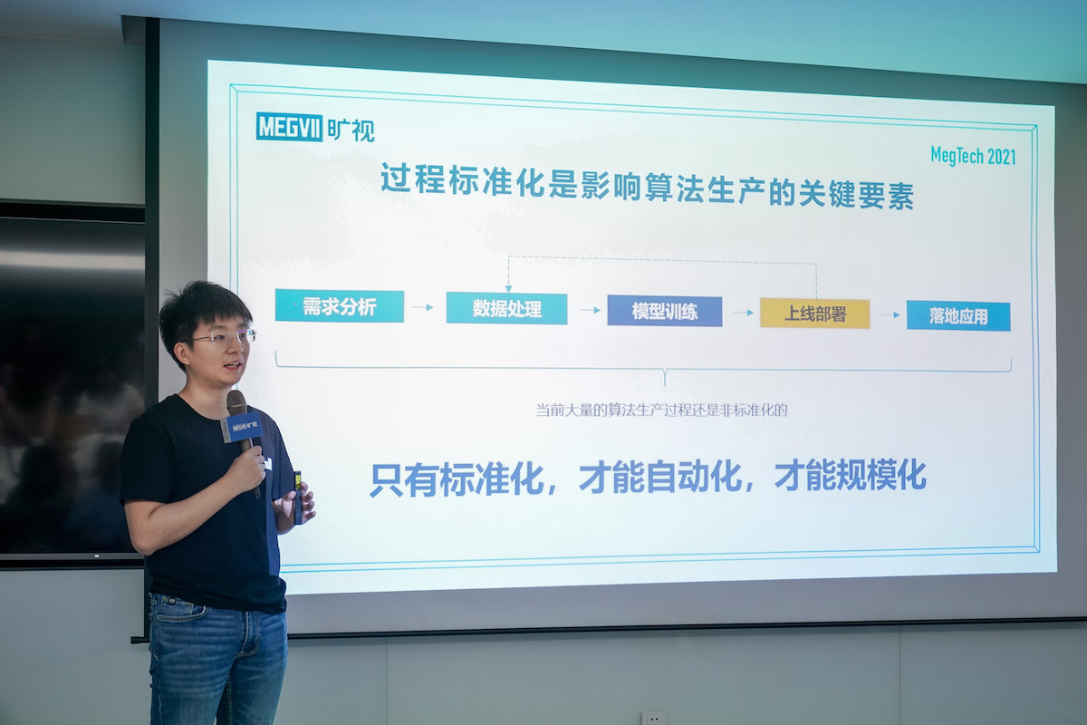 算法出产才干决议算法价值上限,也决议AI是不是真的更易用。当时,很多算法出产进程仍是非规范化的,由于非规范化所以算法出产进程充溢不确定性。旷视以为,落地有用是查验算法的最高规范之一,而出产落地有用算法的进程只要先规范化才干主动化,才干更进一步完成规模化的普惠易用。